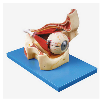 GD/A17104眼球與眼眶放大模型產品介紹:該模型在上頜骨上方將眼球水平切,由眼眶、眼球壁鞏膜、上、下半側、晶狀體、玻璃體以及眼球外肌和視神經等10個部件組成,并顯示眼球壁(鞏膜、角膜、虹膜、睫狀體...