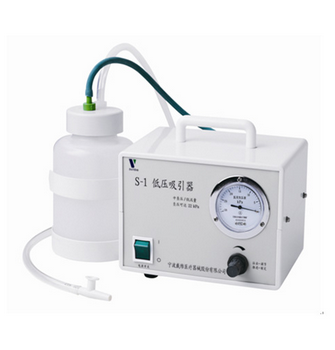S-1/S-2低壓吸引器產品簡介:低負壓電磁泵,關機后無反饋;配有儲液瓶;裝有液滿報警傳感器,當液體達到儲液瓶標稱容量的80%時發出聲光報警提示(S-2適用)?;九渲茫褐鳈C(含吸引泵,真空表,過濾器...