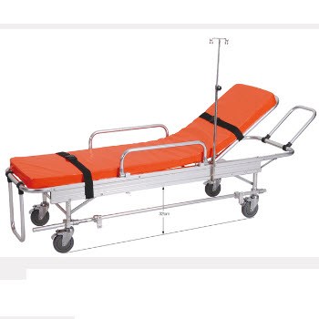 RHY-AS105救護車擔架產品特點:1.本擔架車床墊采用防水海綿制成,靠背角度可調節,使傷病員躺臥舒適。 2.本擔架車采用低車架結構,既可著地移動,又可抬起行走。3.本擔架車前后二頭設有拉環,便于運...